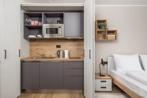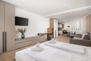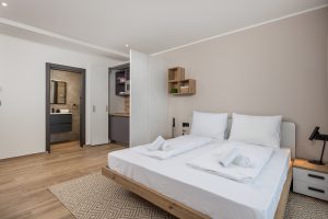 Apartmani su moderno uređeni, svijetli i funkcionalno opremljeni kako bi gostima osigurali ugodan i bezbrižan boravak. Svaka smještajna jedinica uključuje klimatiziran prostor, besplatan WiFi, TV ravnog ekrana, privatnu kupaonicu te potpuno opremljenu čajnu kuhinju s hladnjakom, pločom za kuhanje, mikrovalnom pećnicom i blagovaonskim dijelom.