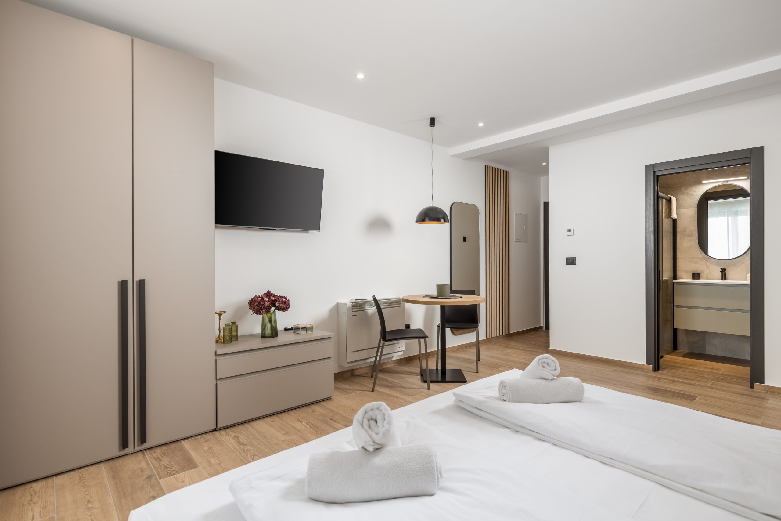 Apartmani su moderno uređeni, svijetli i funkcionalno opremljeni kako bi gostima osigurali ugodan i bezbrižan boravak. Svaka smještajna jedinica uključuje klimatiziran prostor, besplatan WiFi, TV ravnog ekrana, privatnu kupaonicu te potpuno opremljenu čajnu kuhinju s hladnjakom, pločom za kuhanje, mikrovalnom pećnicom i blagovaonskim dijelom.